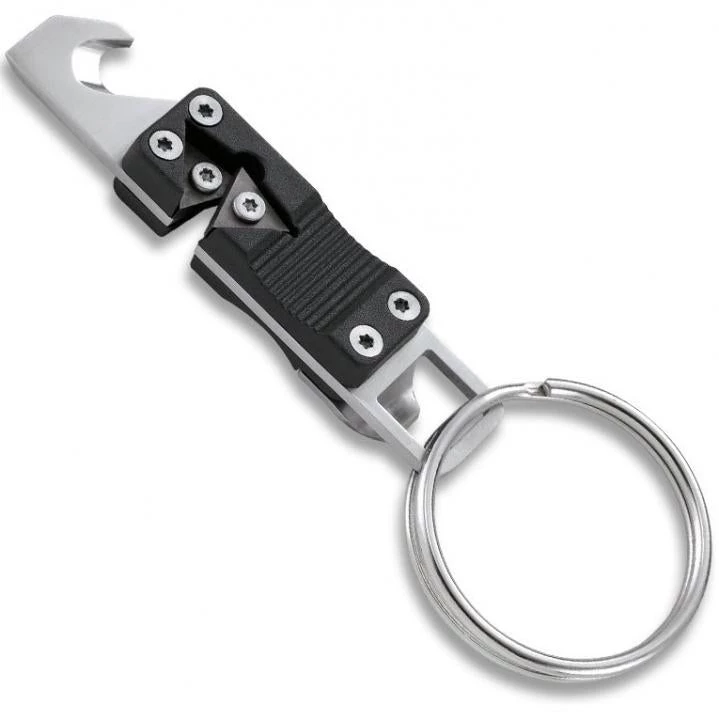 This handy tool also features a flathead screwdriver, small channel blade/cutter, and bottle opener. The Stokes Keychain Sharpener also comes with a split-ring for easy carry attachment.