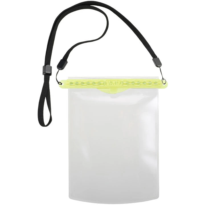 Not only does it keep moisture out of the pouch, but it also keeps particles such as sand and dust out as well. The lanyard is adjustable and can be worn around your neck or wrist or attached to an object.