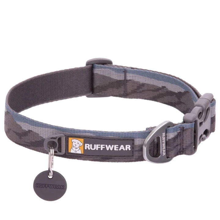 The Flat Out Collar is our everyday dog collar with an easy-to-use side-release buckle and outdoor-inspired patterns that connect you with your favorite wild spaces. It’s packed full of Ruffwear’s essential collar features: separate ID tag attachment point with tag silencer, strong and comfortable webbing, and an aluminum V-ring leash connection point.