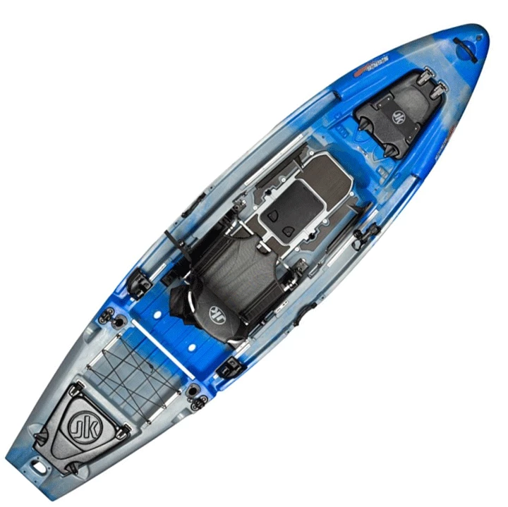 Most unique to the Big Rig HD/FD is the ability to convert from a pedal-driven kayak to a paddle-driven kayak. Simply remove eight bolts, drop in the alternate pod and enjoy the best of both paddling and pedaling worlds. HD configuration features foot-controlled rudder steering and an oversized central storage pod, while the FD uses handles located on both sides of the angler to control the rudder.