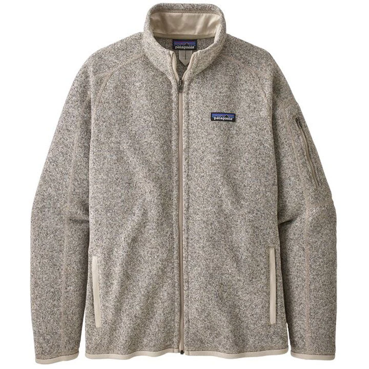 The easy-care Better Sweater® Jacket has a wool-knit face, soft fleece interior and retains its shape and natural good looks after multiple washings. The 100% recycled polyester fabric is spun from heathered yarns and dyed with a low-impact process that significantly reduces the use of dyestuffs, energy and water compared to conventional dyeing methods. The full-front zip ends in a stand-up collar and zipper garage to prevent chafing at the chin. Front forward seams and rear princess seams deliver a flattering contoured shape that layers easily. Soft brushed tricot (100% recycled polyester) trims the wind flap, cuffs, hem and pockets, which include zippered handwarmers, two interior drop-ins and a zippered left-sleeve pocket. Fair Trade Certified™ sewn.