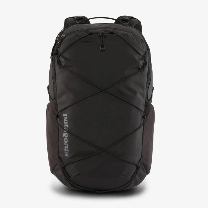 To resist light moisture, this 30-liter pack has a PFC-free DWR finish (durable water repellent coating that does not contain perfluorinated chemistry); all fabrics are 100% recycled polyester except the stretchy mesh for the side pockets, which is an 84% recycled nylon/16% spandex blend