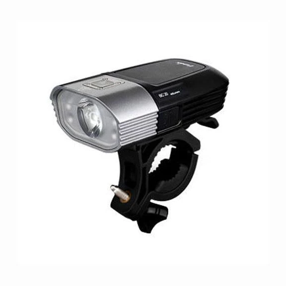 The Fenix BC20 employs four AA batteries to reach a 400-lumen maximum output. Three brightness levels are available. Daylight and flashing modes improve cycling safetly in tandem with the exclusive Dual Distance Beam System. The quick-release mounting system is convenient and secure. Self-contained and with a remote Turbo pressure switch, the BC20 improves early and late riding visibility.