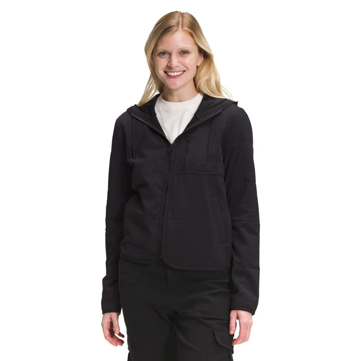- Three-piece, adjustable hood with drawcord